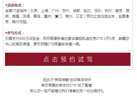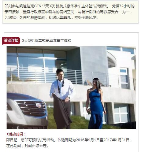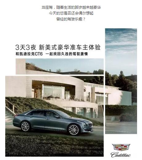 凯迪拉克CT6 3天3夜 新美式豪华准车主试驾体验活动 现已开启