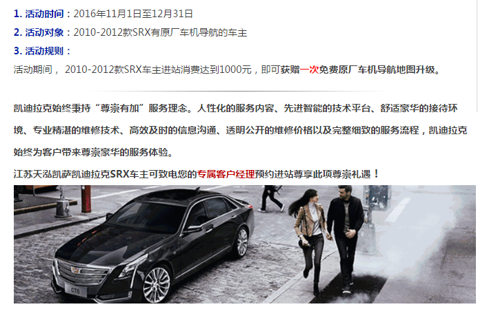江苏天泓凯萨车主福利丨2010-2012款SRX车主回馈活动通知