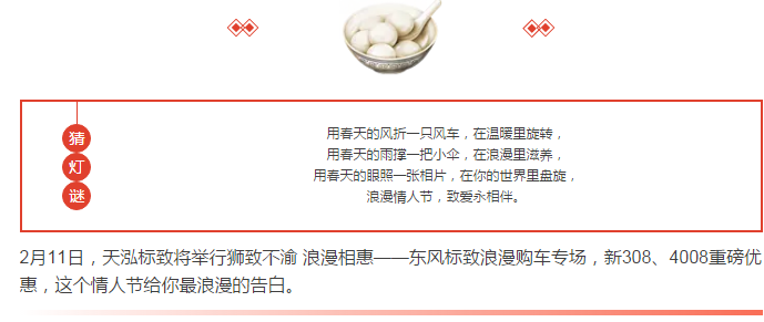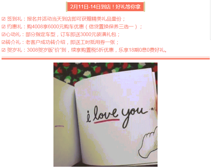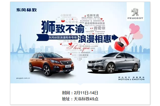 2月11-14日 狮致不渝-浪漫相惠 天泓标致浪漫购车专场