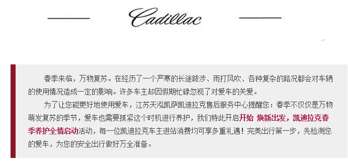 开始 焕新出发︱江苏天泓凯萨凯迪拉克春季养护全情启动
