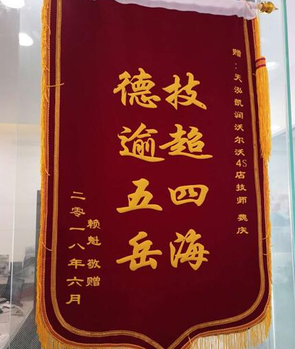 我店售后技师魏庆因卓越的技艺,获得客户充分的肯定,通过和客户有效的沟通,帮客户解决爱车问题,得到客户一致好评和肯定。为他送上了超高评价锦旗,也是对本店的支持和肯定,