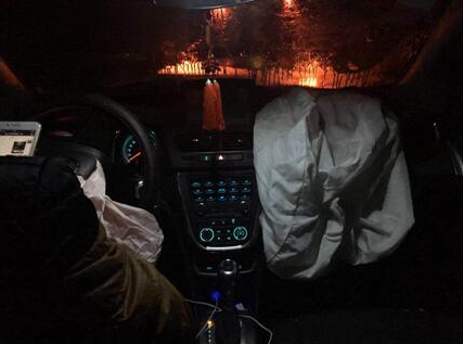 当我们的业务接待夏柳和彭从昆赶到现场时,外面的雨丝毫没有停止的迹象,看见一台车头面目全非、双气囊打开的昂科拉,找到客户双手递上名片。