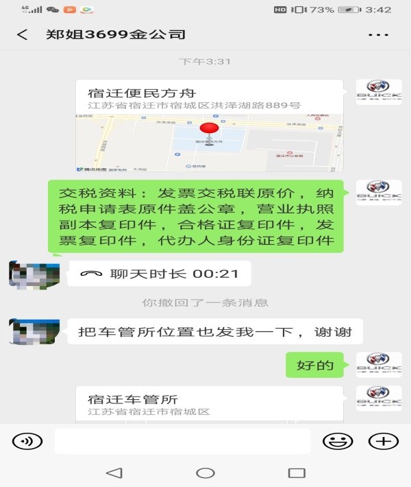 客户电话里非常着急,黄玉不放心,怕上牌过程中出现什么差错办不好,立刻放下手中的事情,一边电话沟通一边直奔车管所,并提醒客户带好相关上牌手续。客户公司离交税地方较近,黄玉让客户先去交税,把定位发给了客户,而自己去车管所帮客户先排队等侯,给客户节省了大部分时间。