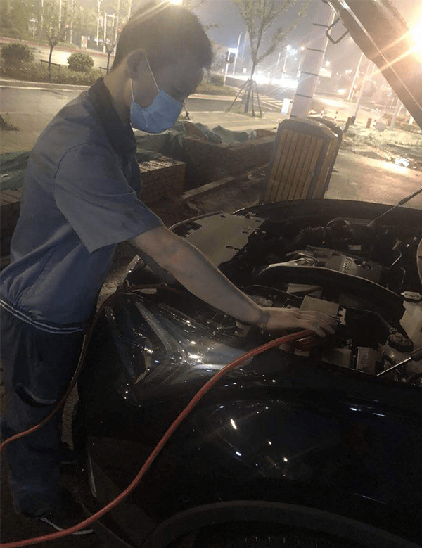 2020年5月13号,在下班途中的机电工周令晚上七点接到救援电话,一辆外地牌照的别克昂科威在宿迁青海湖路启动不着。在电话里能听出来客户很着急回南京,于是周令第一时间回到公司带上救援工具赶往现场。
