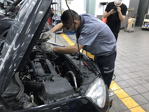 说起周领,江南店的老员工都知道,现在江南店机电的铜级主修马赛就是他带着成长起来的。周师傅从2005年一直干到2016年,坚守了这份岗位11年,任劳任怨,在平凡的岗位上做出不平凡的贡献。他自己也从一个对汽车一无所知的少年成长为专业的汽车“主治医生”,得到所有车主的一致好评。有好多车主甚至是冲着周师傅来店维修保养的,有一次业务部门邀约老客户回店保养,一听说周师傅又回江南店了,客户第二天就来找他解决空调不制冷的“难缠”毛病。