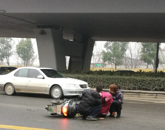 2017年1月4日,一个冷瑟瑟飘着小雨的下午,小伙伴们正在紧张的忙碌着。一辆掉头的电瓶车与一辆直行的奔驰小车在我们公司大门口的高架桥下发生刮蹭事故,电瓶车和人倒在路边,旁边一堆呕吐物,人蠕动了两下就一动不动了,前方50米开外奔驰车主似乎头次遇到事故,有点手足无措。