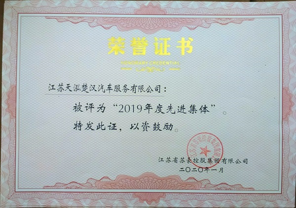 2019年度苏豪控股集团先进集体-天泓楚汉