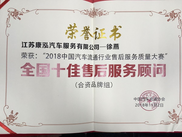 2018康泓徐燕-全国十佳售后服务顾问