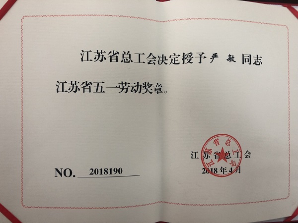 2018康泓严敏“省五一劳动奖章”