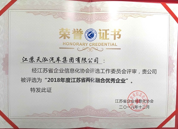 2018年度江苏省两化融合优秀企业