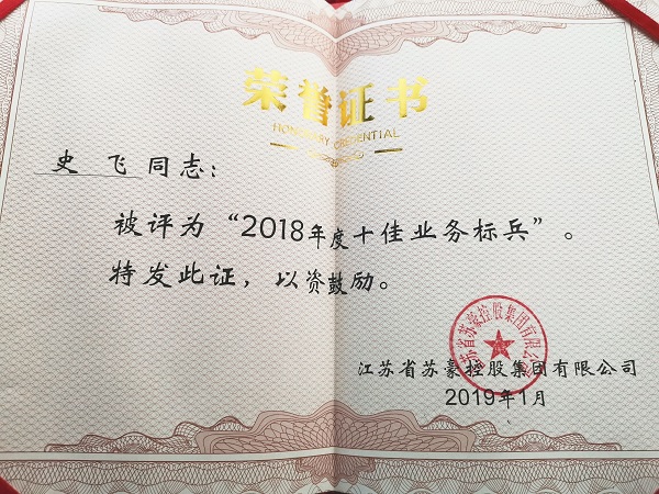2018年度苏豪控股集团十佳业务标兵-史飞
