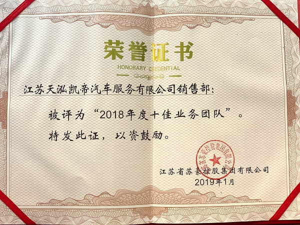 2018年度苏豪控股集团十佳业务团队-天泓凯帝