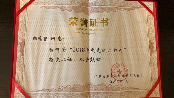 2018年度苏豪控股集团先进工作者-郭鸣智