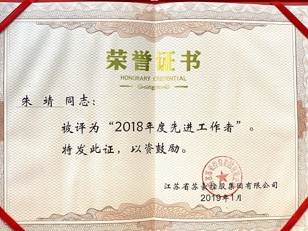 2018年度苏豪控股集团先进工作者-朱靖