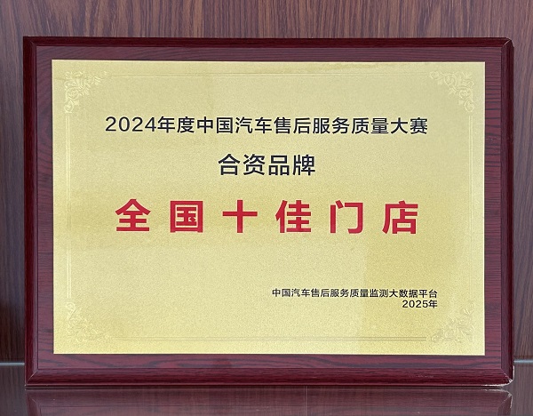 2024年度中国汽车售后服务质量大赛-合资品牌“全国十佳门店”-天泓紫金